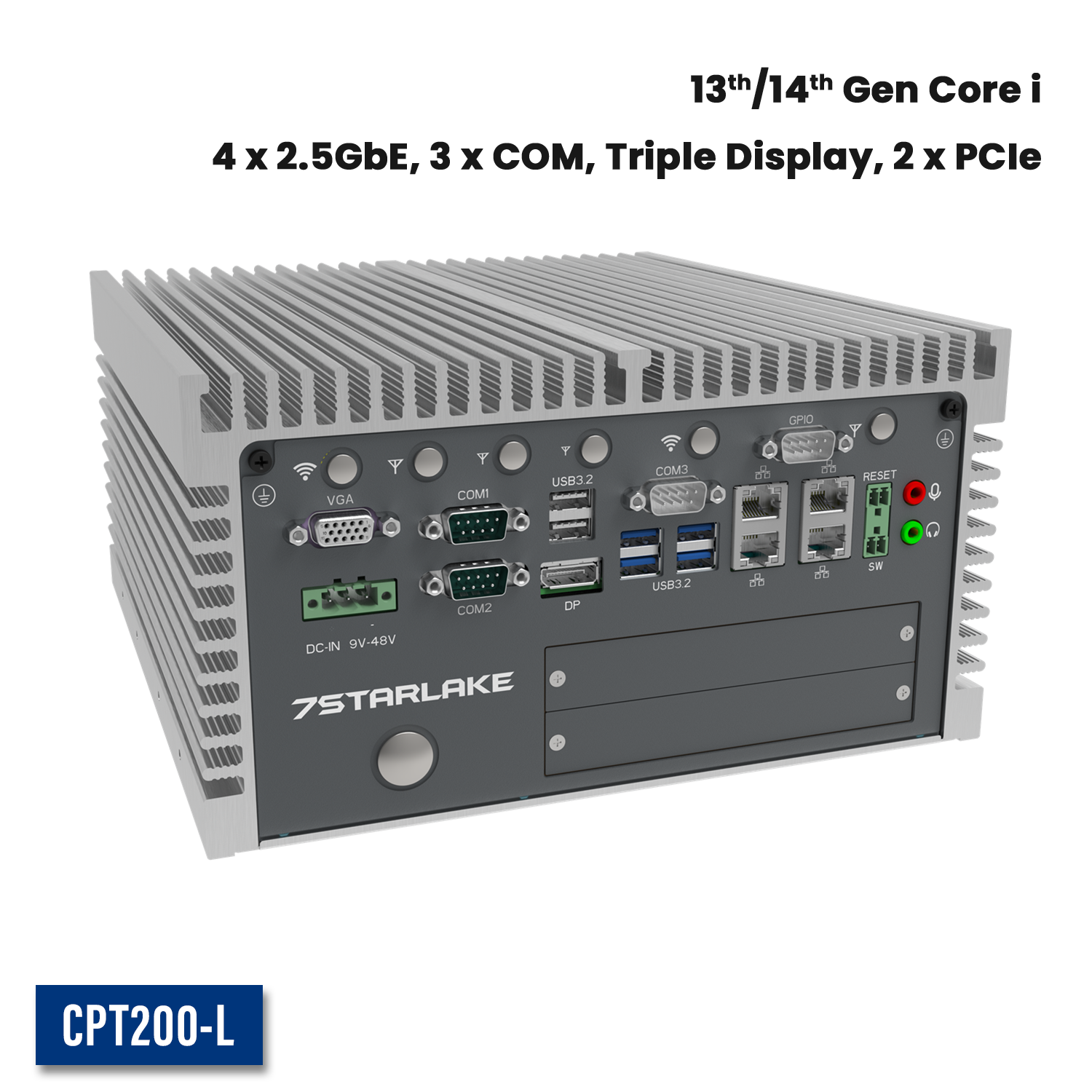 CPT200-L: Industrial Fanless Embedded Computer with 4 x 2.5GbE, 3 x COM, Triple Display, 2 x Expansion Door