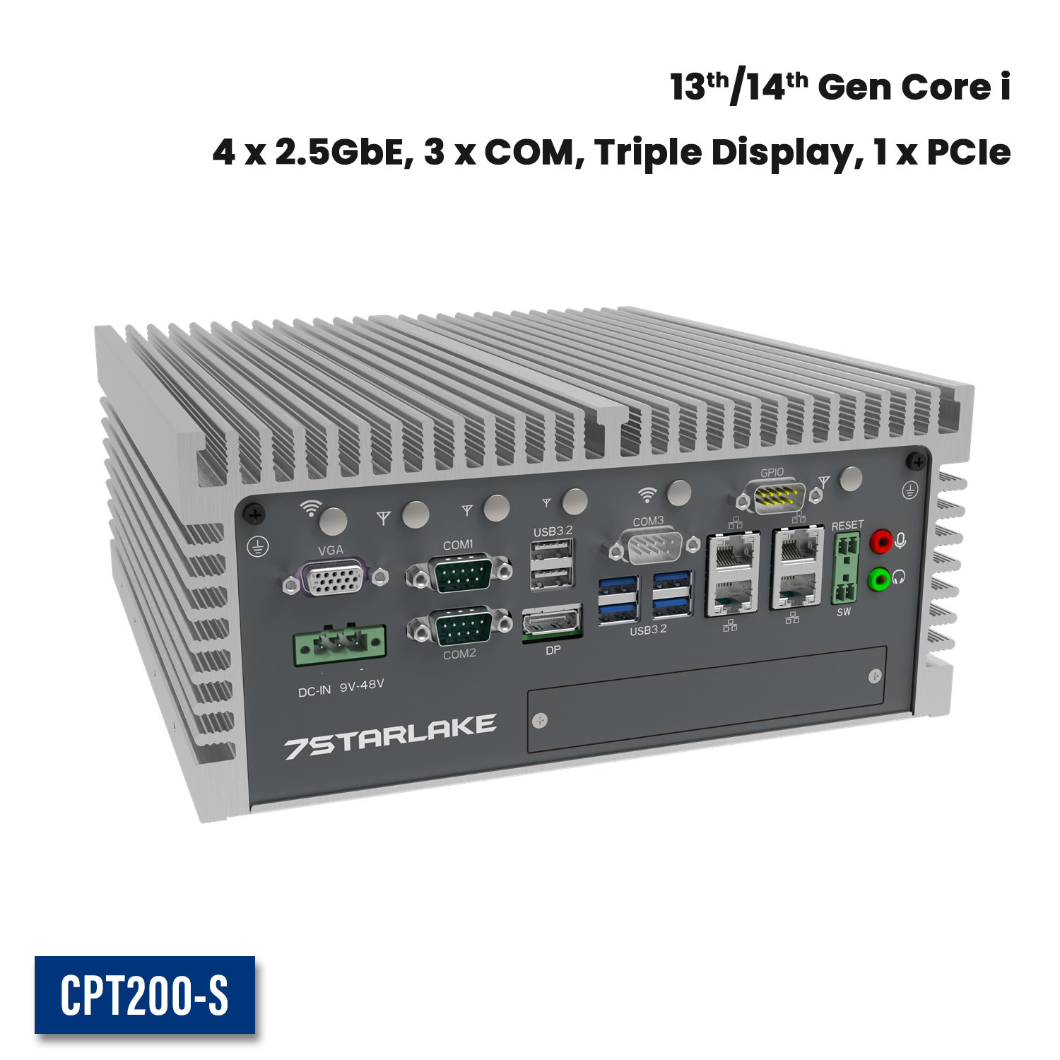 CPT200-S: Industrial Fanless Embedded Computer with 4 x 2.5GbE, 3 x COM, Triple Display, 2 x Expansion Door