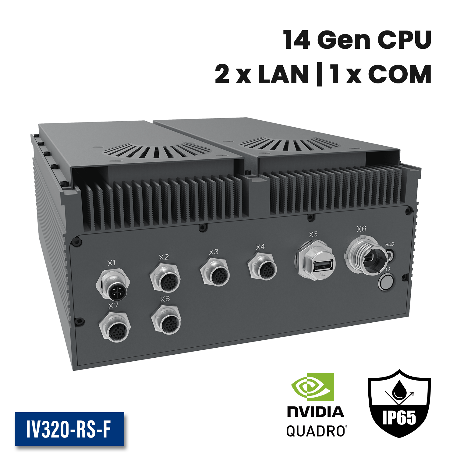 IV320-RS-F: Full IP65 Rugged AI Edge Computer with GPU, 2 x 2.5GbE w/M12,1 x miniDP w/M20, 1 x USB3.0 w/M20, DC-IN 18~36V