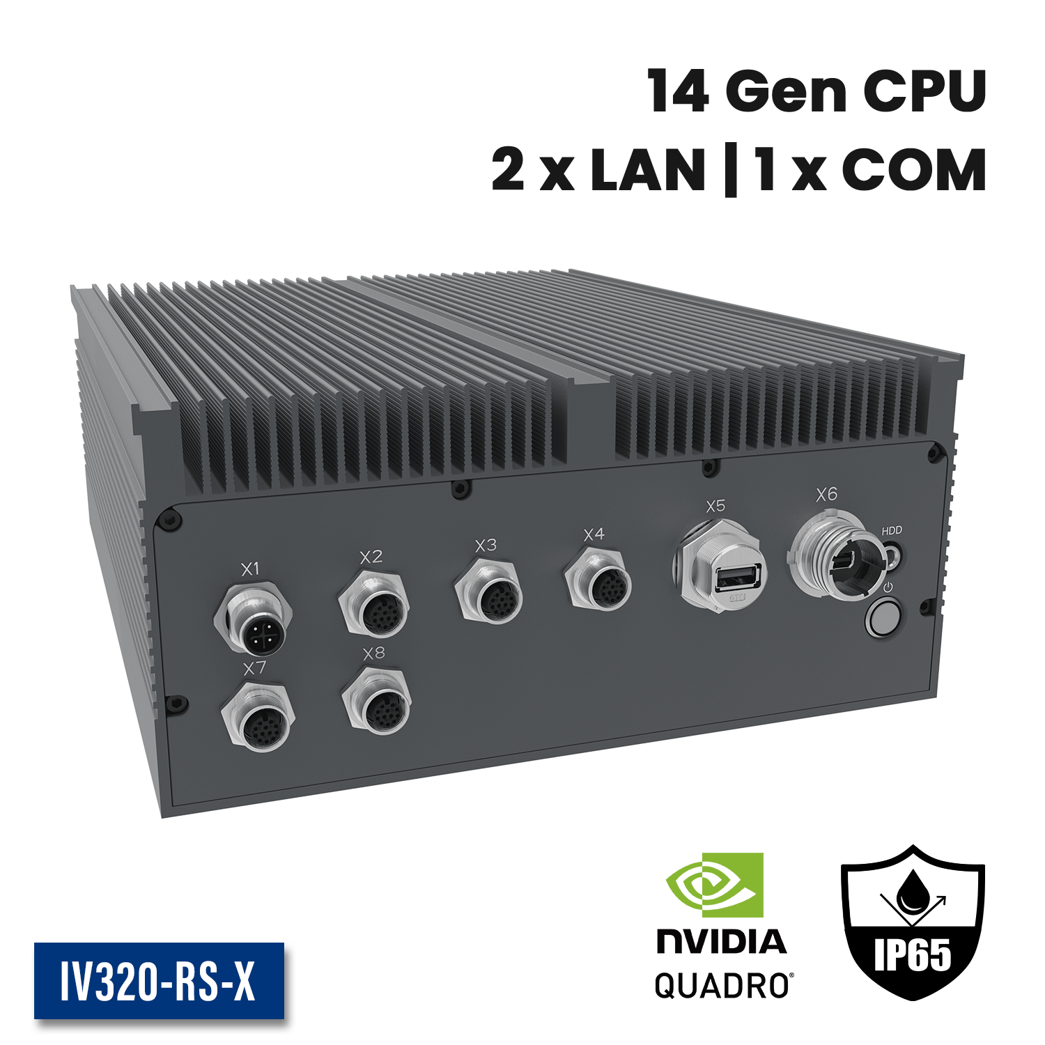 IV320-RS-X: Full IP65 Rugged AI Edge Computer with 2 x 2.5GbE w/M12,1 x miniDP w/M20, 1 x USB3.0 w/M20, DC-IN 18~36V