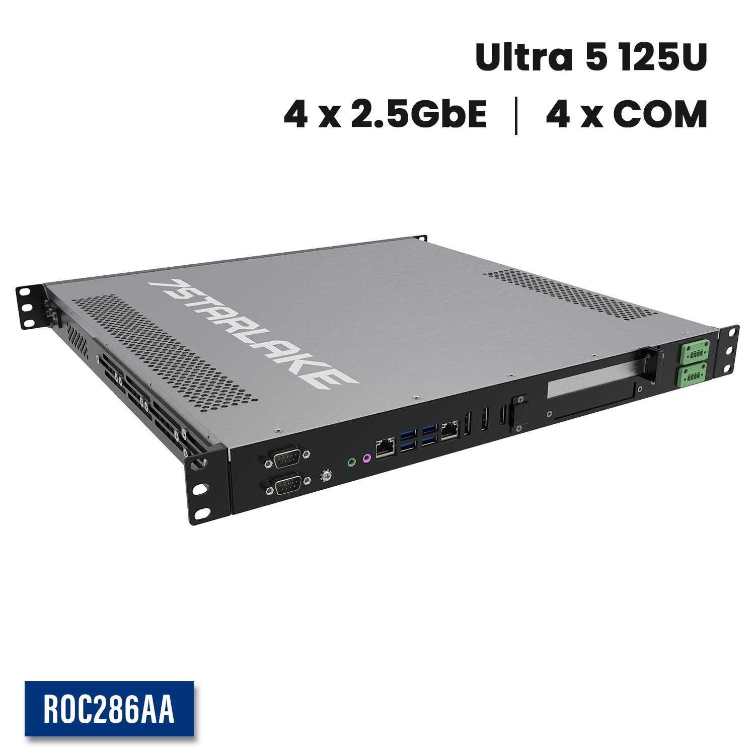 ROC286AA: 1U Fanless Rackmount Server with 2 x COM, 6 x USB, Redundant DC-IN 9~36V