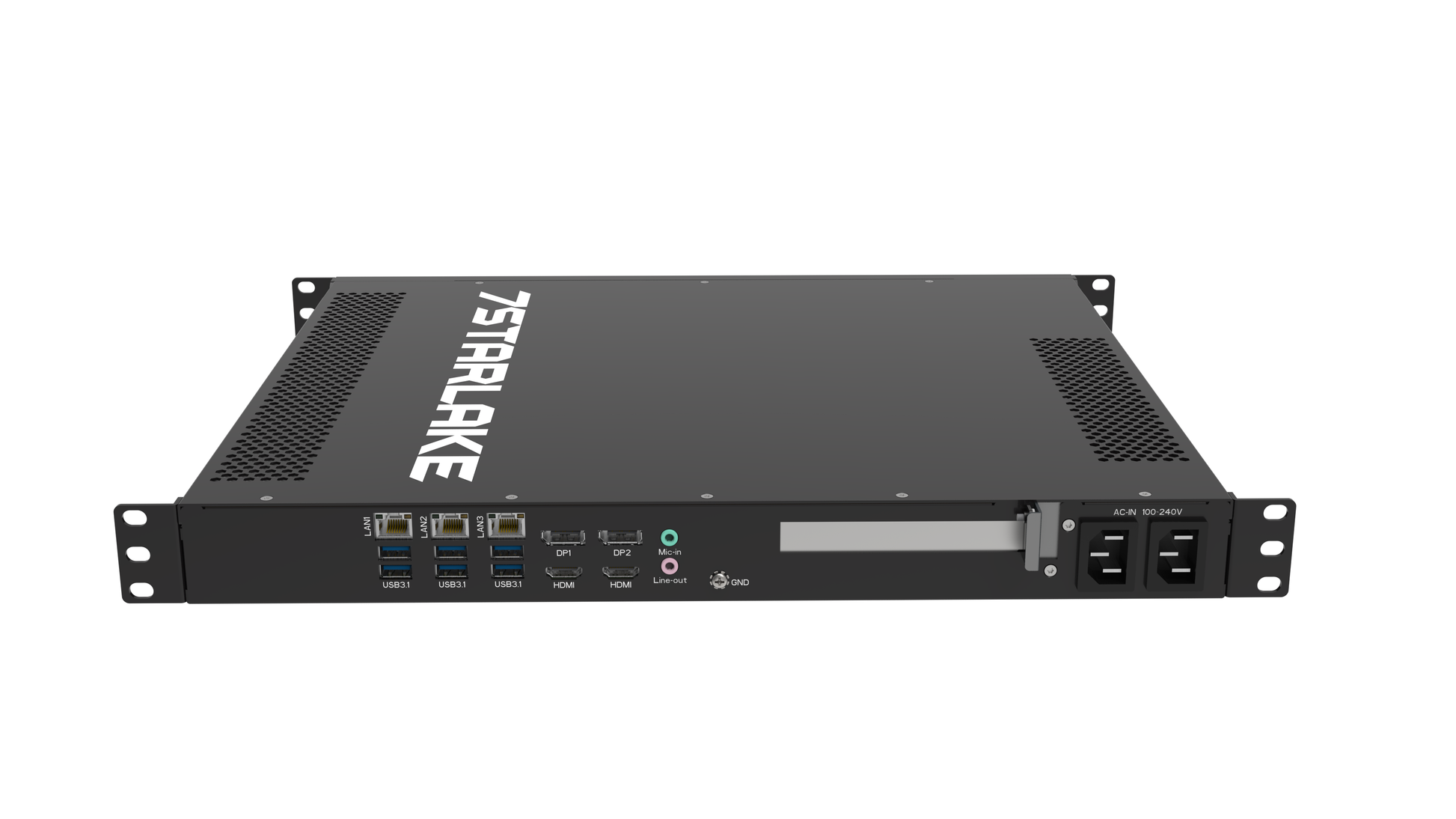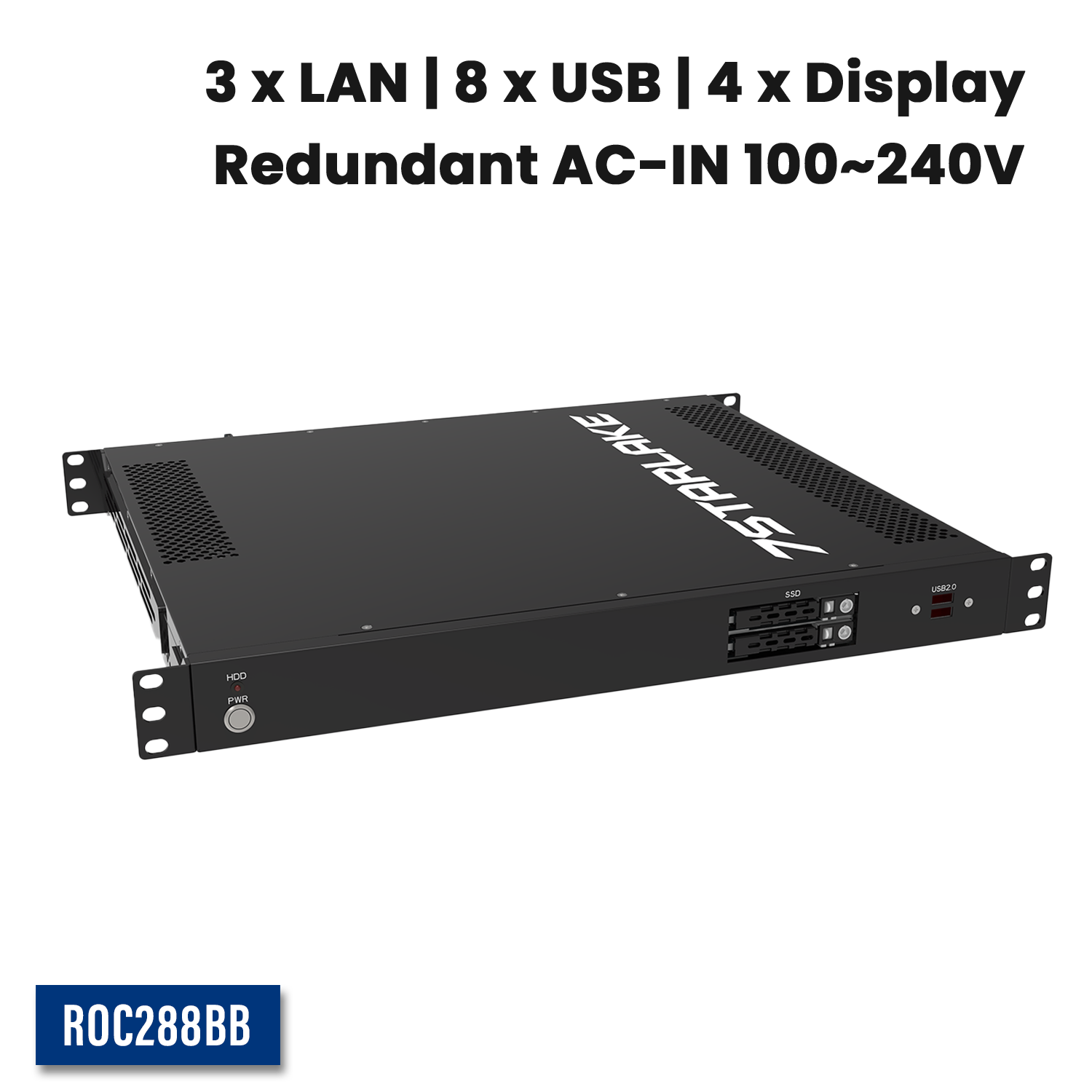 ROC288BB: 1U Fanless Rackmount Server with 3 x LAN, 8 x USB, 4 x Display, Redundant AC-IN 100~240V