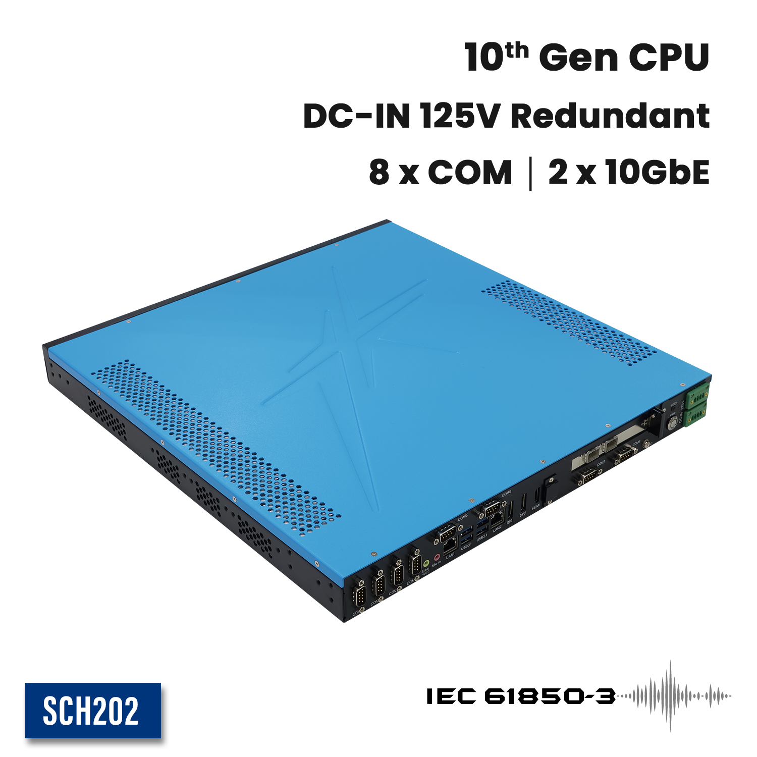SCH202: 1U Fanless Power Automation Computer with 8 x COM, 2 x 10GbE, Redundant 125V DC