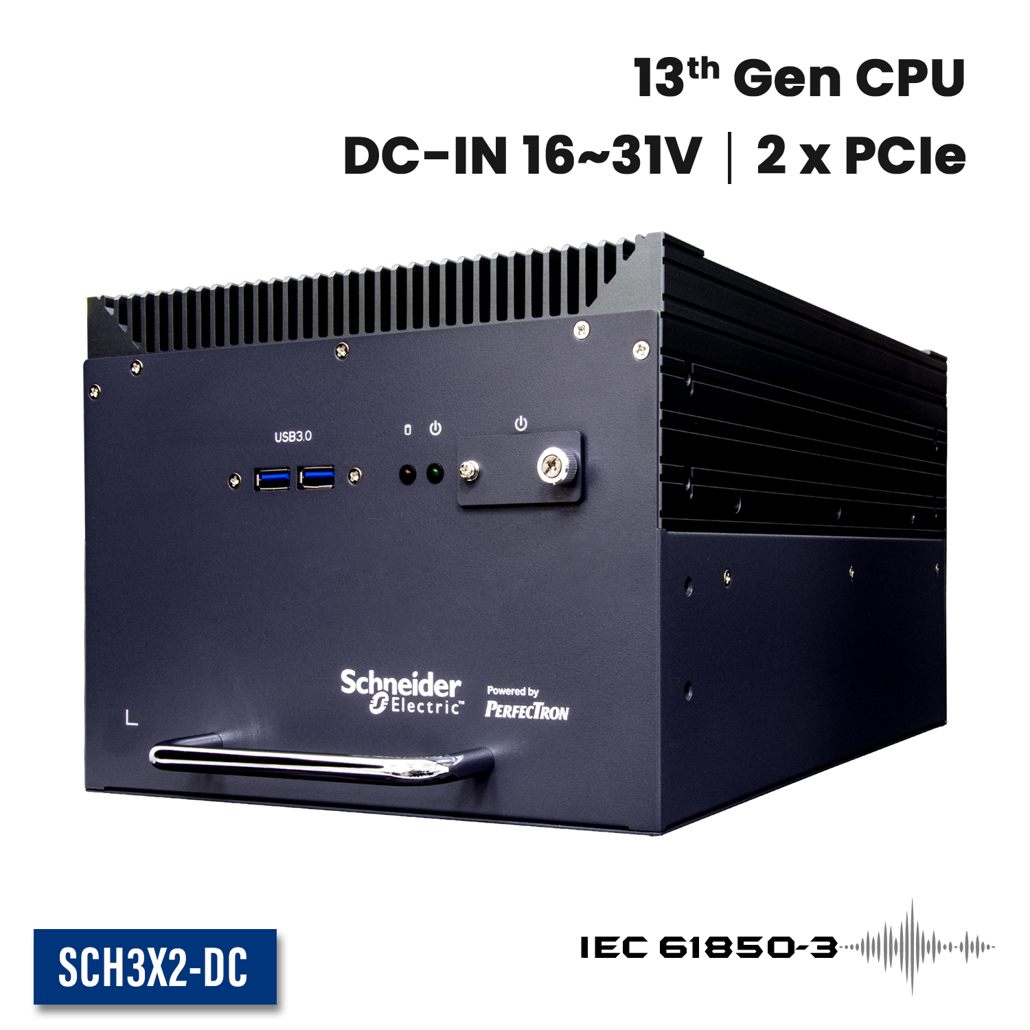 SCH3X2-DC: IEC-61850-3 ,IEEE-1613 Smart Energy Fanless Computer with 2 x PCIe Expansion, 2 x Hot Swappable SSD, DC Input 16~31V