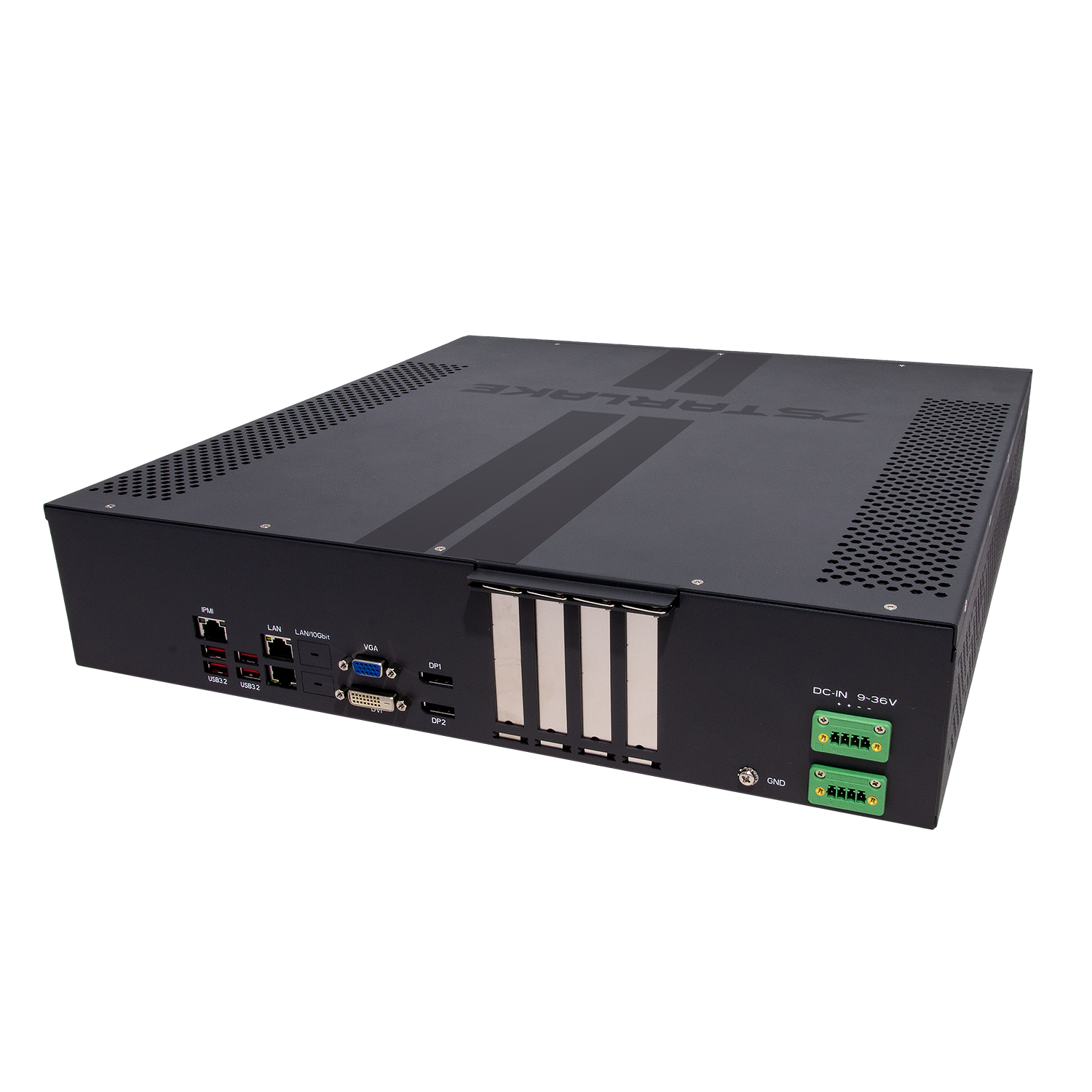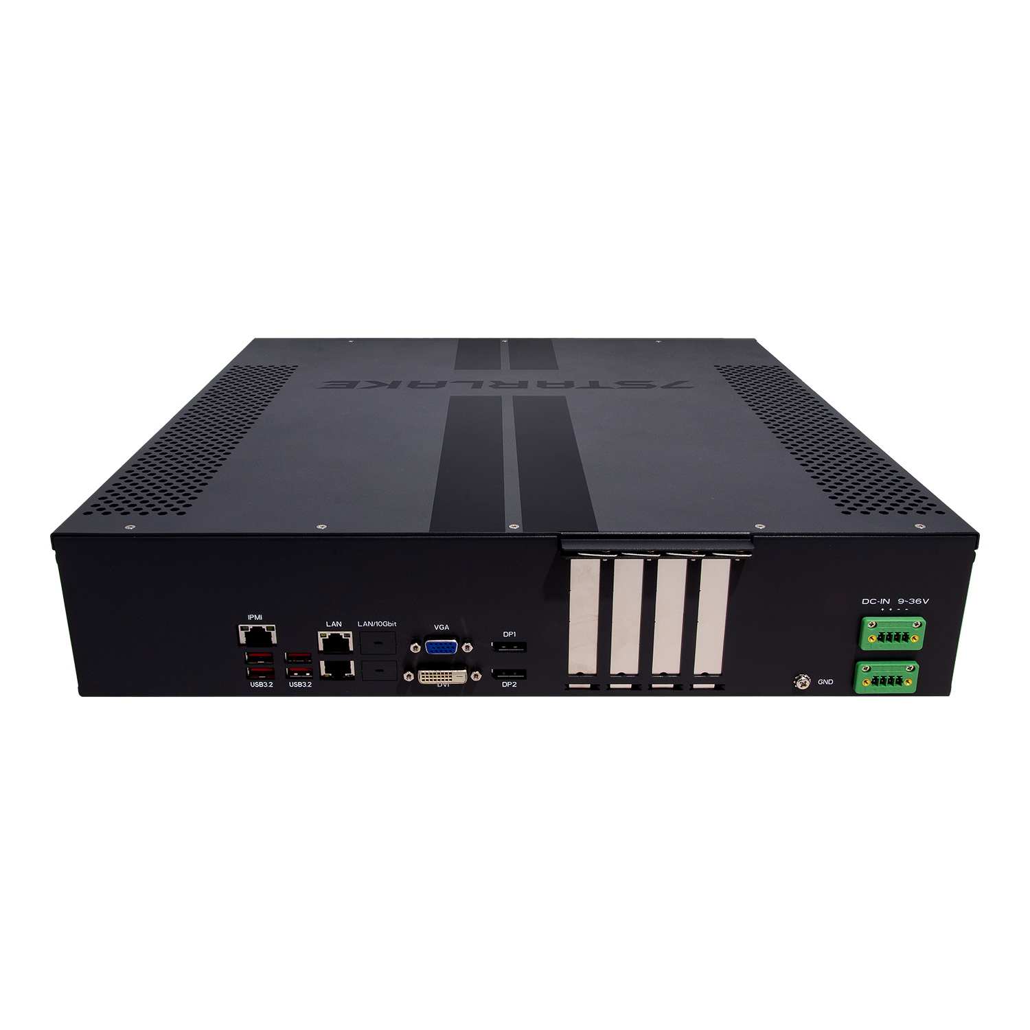 - 2 x LAN (RJ45), 4 x USB, 2 x DP, 1 x VGA, 1 x DVI-D