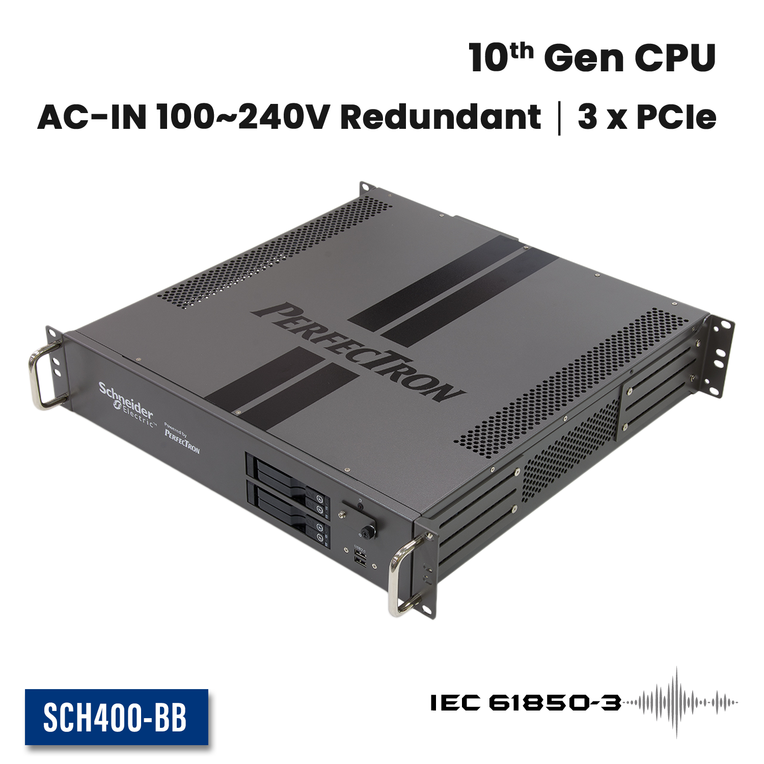 SCH400-BB: 2U 19" Smart Grid Fanless Rackmount Server with 3 x PCIe Expansion, Redundant AC Input 100~240V, 4 x Swappable SSD support RAID 0/1/5/10